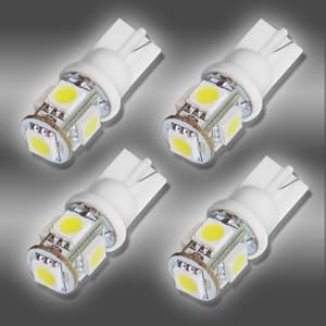 Each pack includes 4pc T10 WHITE bulbs. Each bulb is built with 5pc 3-chip 5050 High Power SMD LED. Ultra Bright.