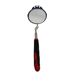With this Telescopic Inspection Mirror from IIT you can view hard-to-reach places with ease. It features a comfortable rubberized grip handle, a fully rotational ball joint that allows you to bend the mirror in any direction, a set of three LEDs illuminating the mirror, and the ability to telescopically expand from a starting length of 11" all the way to 30", allowing you get a good look at places you'd have to either climb up or get down on your knees to otherwise view. Great for the inspection of job sites, plumbing or electrical systems, or viewing anything just out of reach.